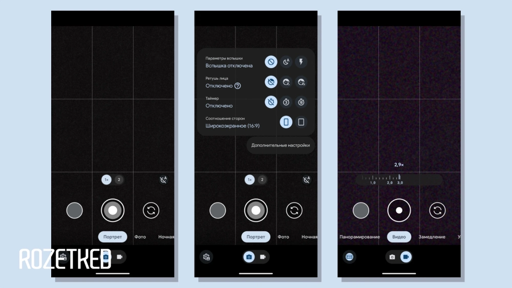 - режимы для съёмки фото и видео теперь явно разделены. Переключатель находится под каруселью режимов. Вкладки «Ещё» больше нет;