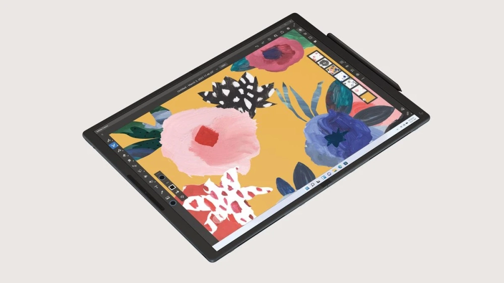 Это 17,3-дюймовое решение, которое можно использовать как планшет, ноутбук и настольный компьютер. В последнем случае экран ставится на подставку, а клавиатура используются отдельно от него. Внутри лэптопа стоит процессор Intel Core i7-1250U со встроенной графикой Iris Xe, 16 ГБ ОЗУ LPDDR5-5200 и SSD NVMe ёмкостью 1 ТБ.