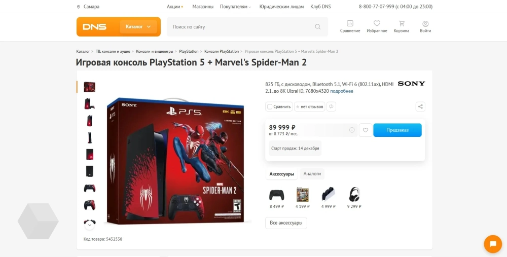 В DNS начали собирать предварительные заказы на лимитированный набор PlayStation 5 в стиле Marvel's Spider-Man 2.