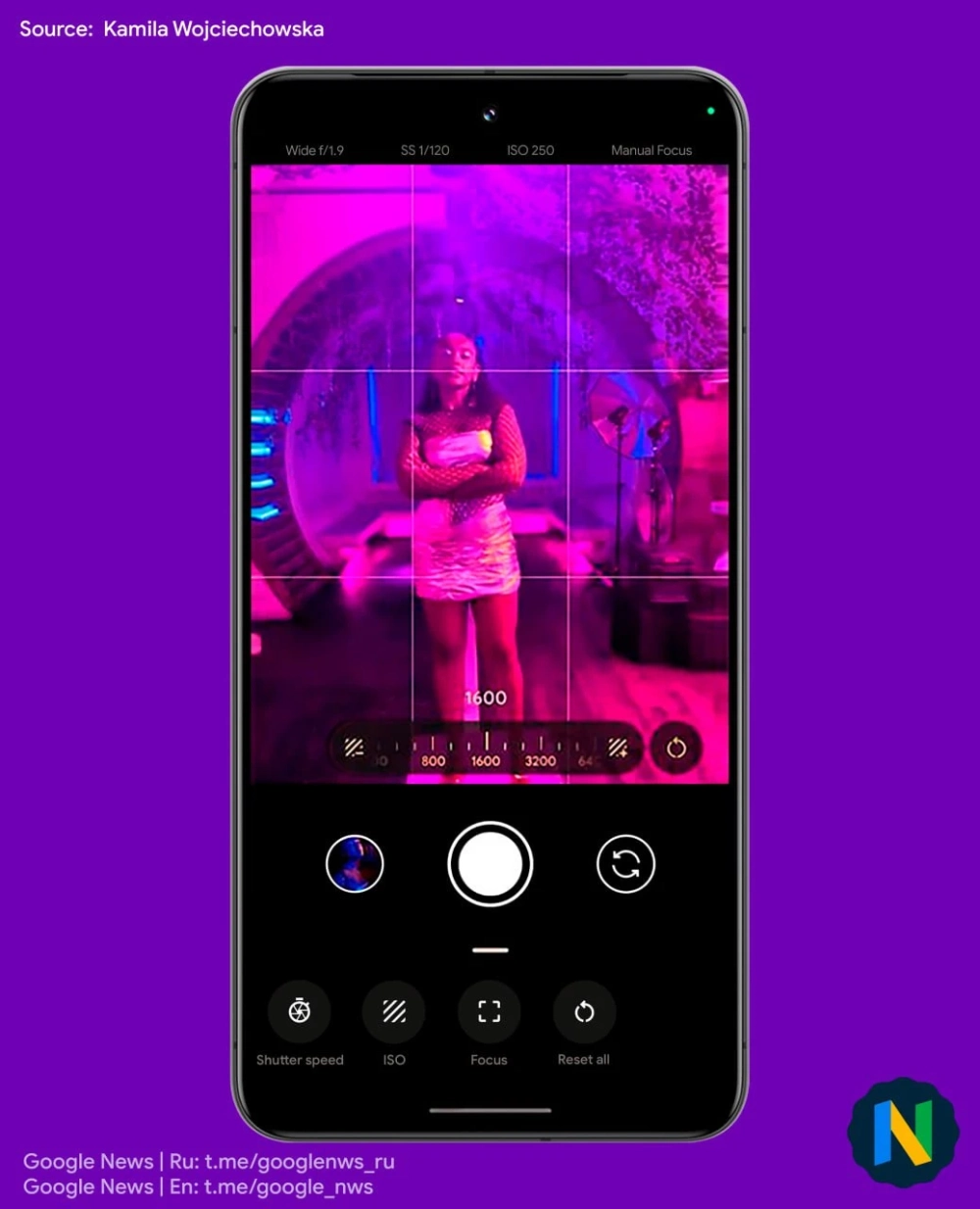 «Профессиональный» режим в «Google Камере» — эксклюзив Google Pixel 8 Pro. Пользователи смогут настраивать как минимум ISO, скорость затвора и фокус. Ещё старшая модель сможет снимать фото в полном разрешении 50 Мп.