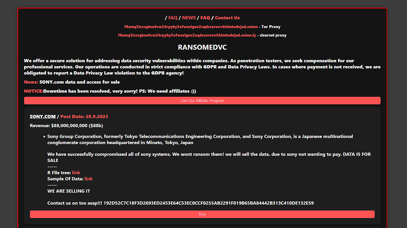 Хакерская группировка Ransomed.VC якобы взломала все системы Sony