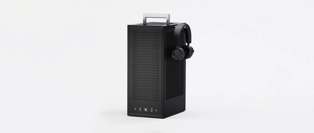 На корпусе ПК есть ручка для транспортировки и выдвижные держатели для аксессуаров. Боковые панели можно снять без использования инструментов. Пользователю доступны внешние порты на передней панели.