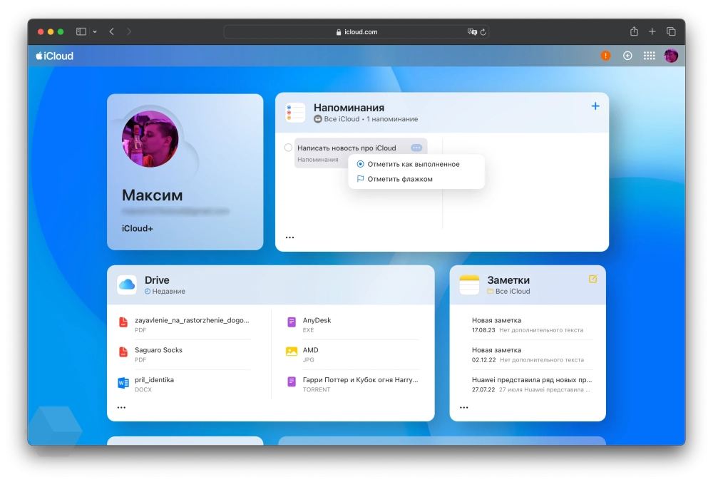 Apple обновила веб-версию iCloud. Теперь она выполнена в стиле iOS 17 и macOS 14 Sonoma, а также имеет интерактивные виджеты.