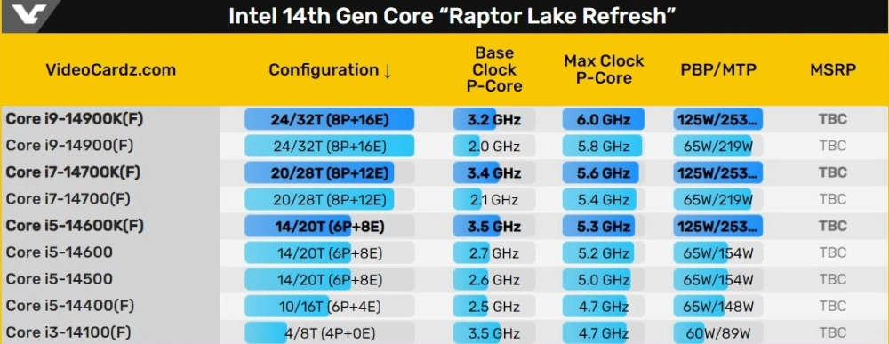 Первые официальные маркетинговые материалы процессоров Intel 14-го поколения Raptor Lake Refresh подтвердили некоторые характеристики.
