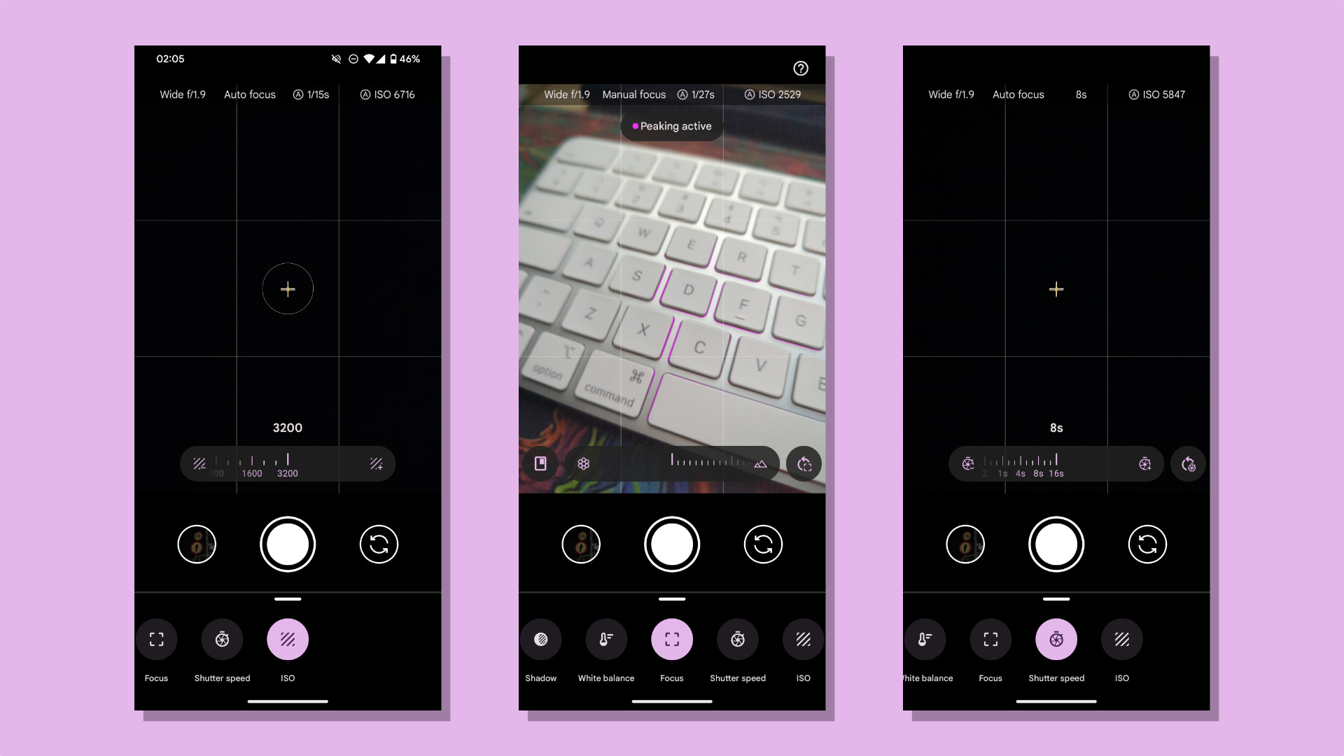 В режиме Pro приложение позволяет контролировать скорость затвора, ISO, баланс белого, фокусировку, а также переключение между объективами. Единственное ограничение — максимальная скорость затвора на Pixel 7 Pro составляет 8 секунд вместо 16 секунд у 8 Pro.