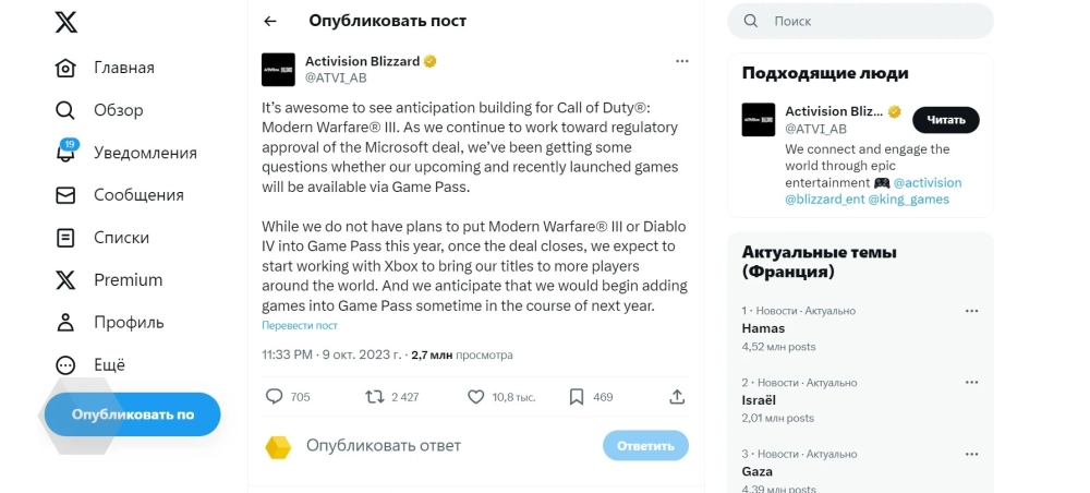 Activision Blizzard: Diablo IV и Call of Duty Modern Warfare III не появятся в Game Pass в этом году