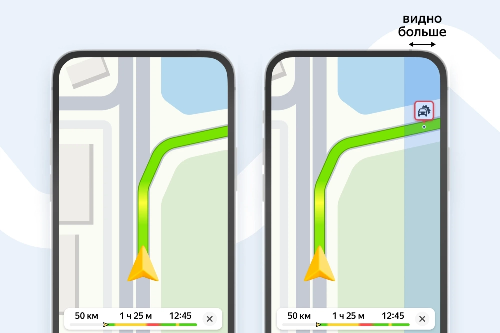 Ещё в «Картах» обновилась камера, которая ведёт по маршруту: теперь она умещает на экране больше пути и дорожных событий впереди.