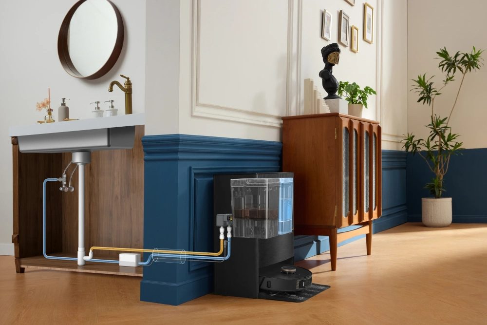 Стратегию уборки Dreame Bot L30 Ultra выбирает автоматически благодаря системе Pathfinder — она использует технологию 3D-сканирования помещения и позволяет роботу объезжать препятствия. Станция самоочистки сама сливает грязную воду, наливает чистую и сушит швабры для влажной уборки, тем самым предотвращая неприятный запах. Её можно подключить к водопроводу, чтобы грязная вода автоматически сливалась, а чистая — набиралась в резервуар.