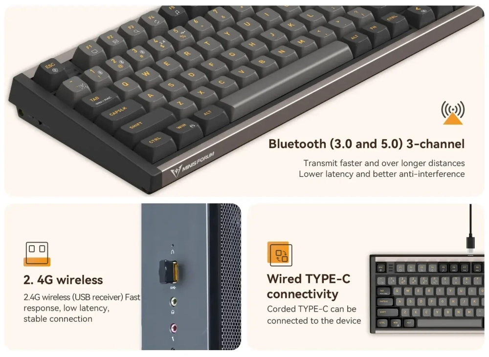 Компания Minisforum, известная нашим читателям компактными компьютерами, выпустила беспроводную механическую клавиатуру MKB i83.