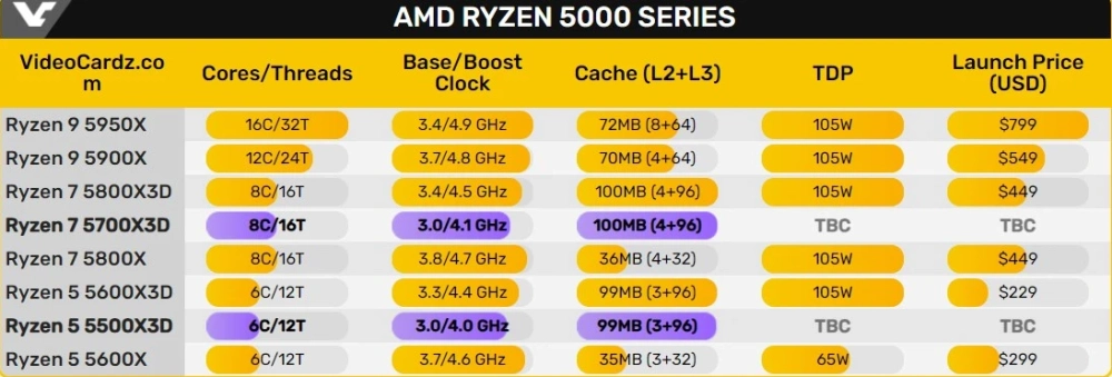 Источник: ждите выхода AMD Ryzen 7 5700X3D и Ryzen 5 5500X3D