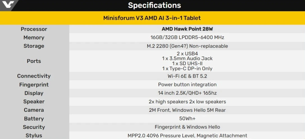Стали известны новые подробности о планшете Minisforum V3 с Ryzen 8040