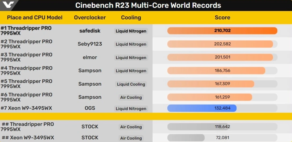 AMD Ryzen Threadripper PRO 7995WX разогнали до 6,2 ГГц — он побил рекорд в Cinebench R23