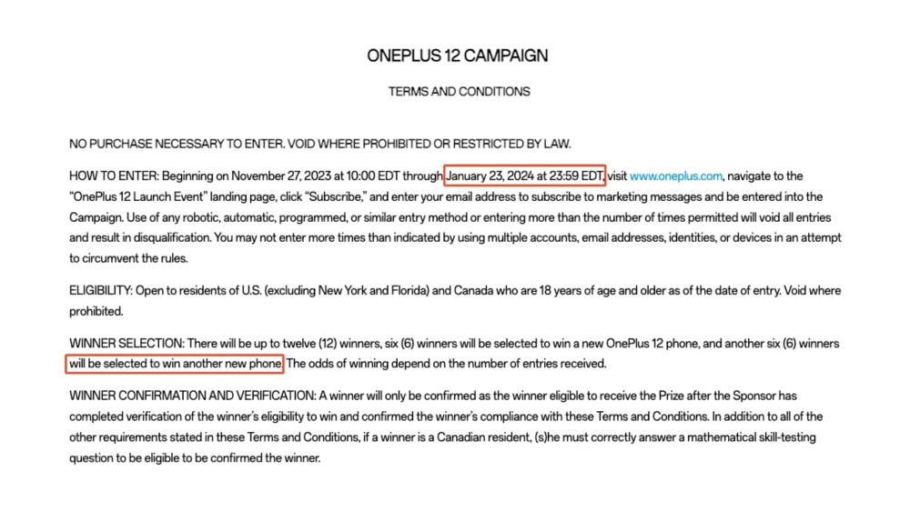OnePlus запустила глобальную маркетинговую кампанию флагманского смартфона OnePlus 12. Пользователи обратили внимание, что в условиях акции есть намёк на дату презентации устройства за пределами Китая.