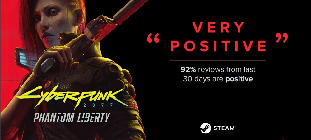 В компании подчеркнули, что репутация Cyberpunk 2077 становится всё лучше и лучше. За последние 30 дней в Steam у игры и DLC 92% положительных отзывов. Результат отличный. Особенно, если вспомнить, какой ужас происходил с игрой на старте.