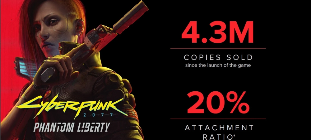 CD Projekt RED сообщила, что продажи дополнения Phantom Liberty для Cyberpunk 2077 перевалили за 4,3 млн копий.