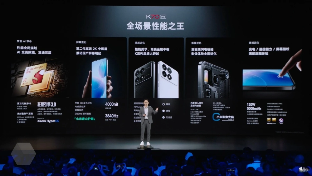 Представлены Redmi K70 и K70 Pro — первые на рынке смартфоны с экраном 4000 нит