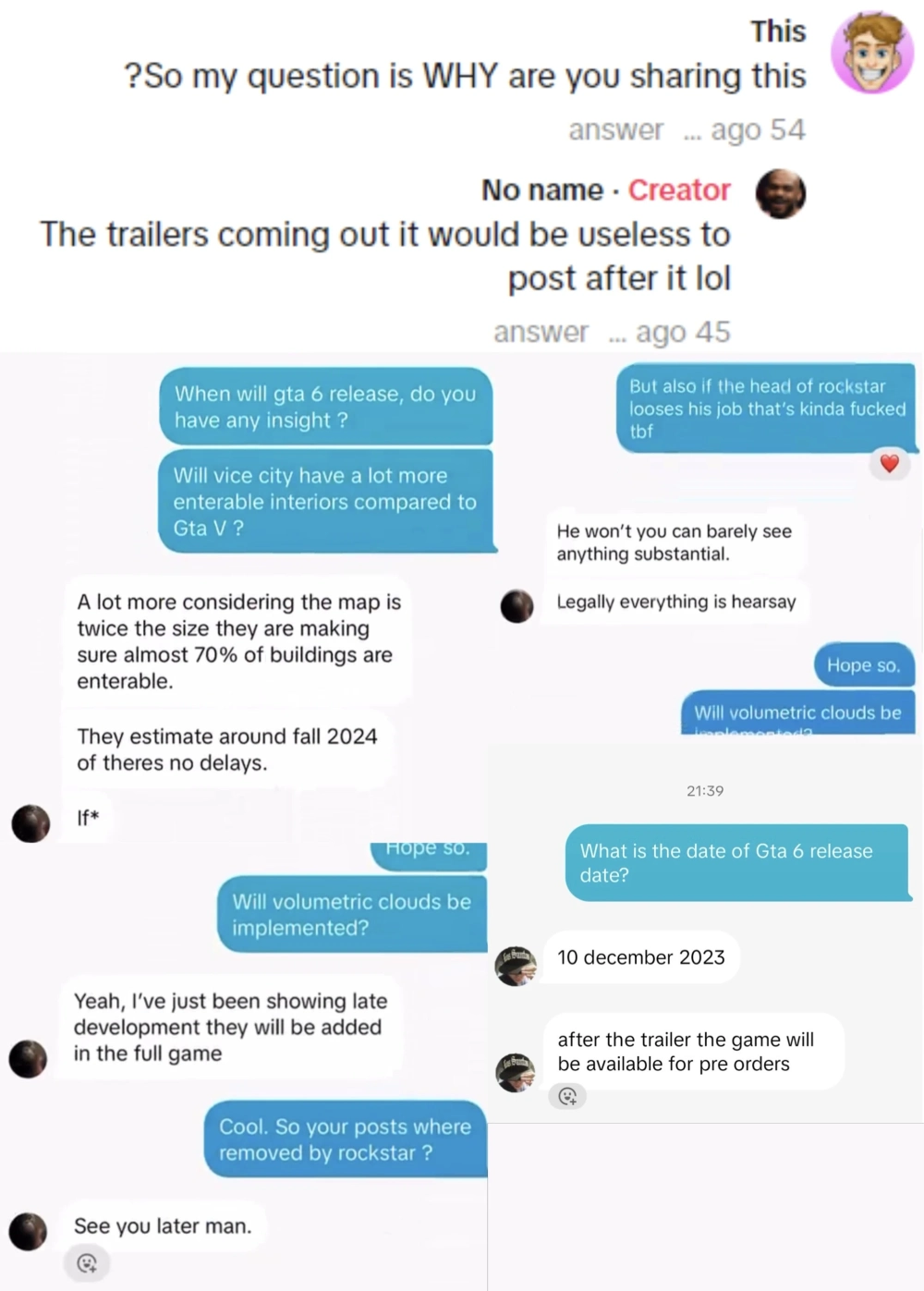 Как утверждается, источником утечки оказался друг сына нынешнего руководителя разработки студии Rockstar North Аарона Гарбута. В опубликованной переписке он рассказал, что: