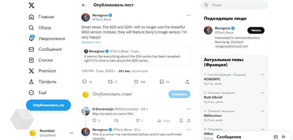 «Отличные новости: S25 и S25+ больше не будут использовать ужасный сенсор GN3; вместо этого они будут оснащены датчиком изображения Sony. Я очень счастлив!», — Tech_Reve.