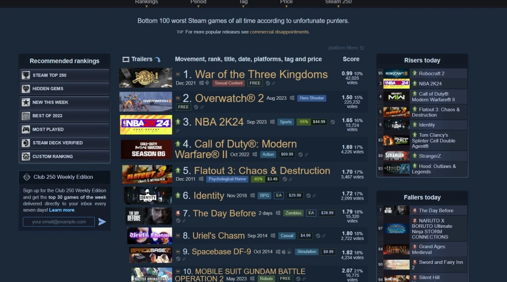 По данным сервиса Steam250, экшен The Day Before от студии Fntastic попал в топ-10 самых низкооценённых игр в истории Steam.