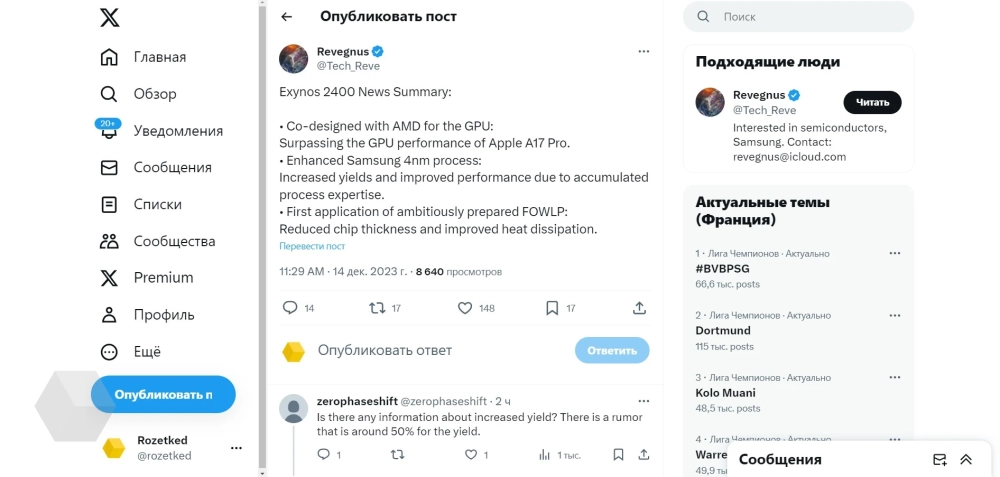 Инсайдер с ником Revegnus рассказал немного подробностей о графическом процессоре, который будет использоваться в Samsung Exynos 2400.