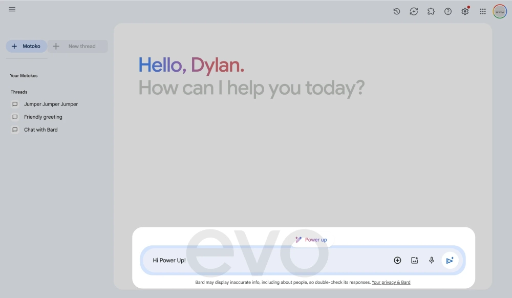 - Кнопка Power Up. Её детали неясны, но функция каким-то образом поможет улучшить ответы Bard.