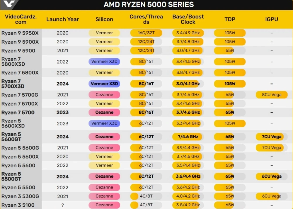 Ресурс Videocardz продолжает преждевременно публиковать официальные материалы о новом «железе». Очередная публикация издания посвящена процессорам Ryzen 5700X3D, Ryzen 7 5700, Ryzen 5600GT и 5500GT, которые выйдут 31 января.