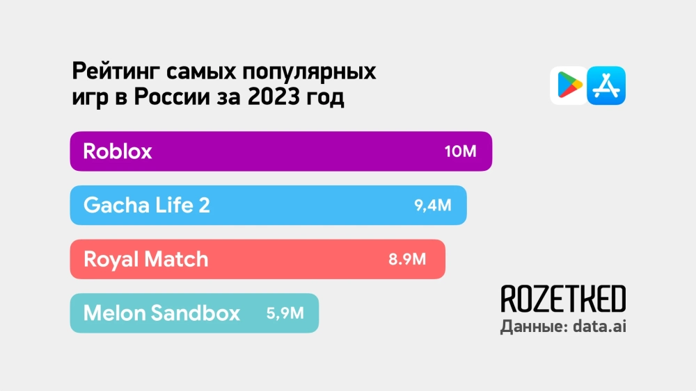Аналитики: Roblox — самая скачиваемая мобильная игра в России в 2023 году