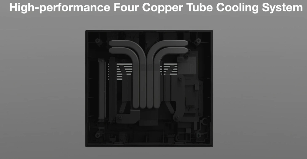 Система охлаждения у компьютера активная и состоит из четырёх тепловых трубок и одного вентилятора.