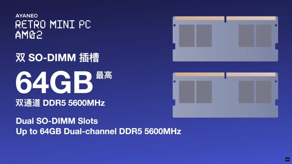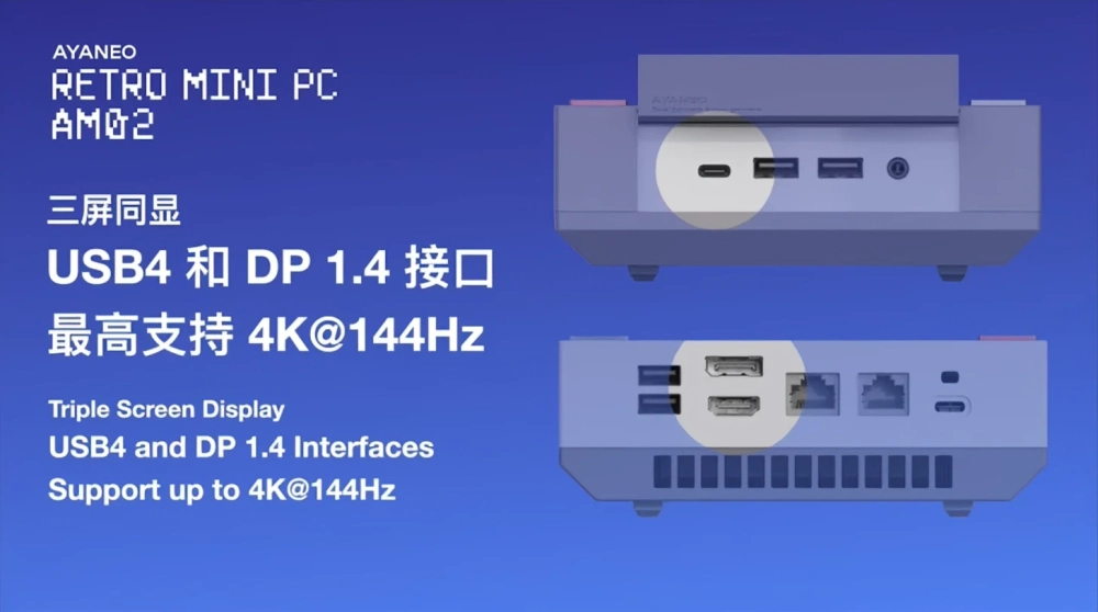 Всего в Ayaneo AM02 можно будет установить до 64 ГБ ОЗУ DDR5-5600 (есть два слота SO-DIMM) и один накопитель PCIe Gen4 M.2 ёмкостью до 8 ТБ. Из внешних портов у мини-ПК есть LAN 2,5 GbE, USB4, HDMI 2.1 и DisplayPort 1.4. Поддерживаются Wi-Fi 6E и Bluetooth 5.2.