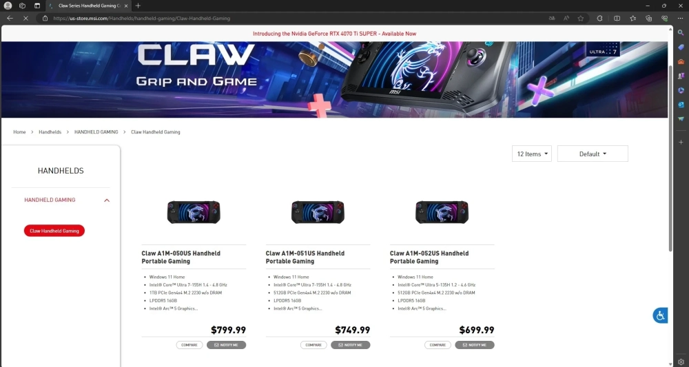 Крупный испанский магазин PC Componentes добавил к себе в каталог новый портативный компьютер MSI Claw. Благодаря этому стала известна европейская стоимость устройства и дата поступления в продажу.