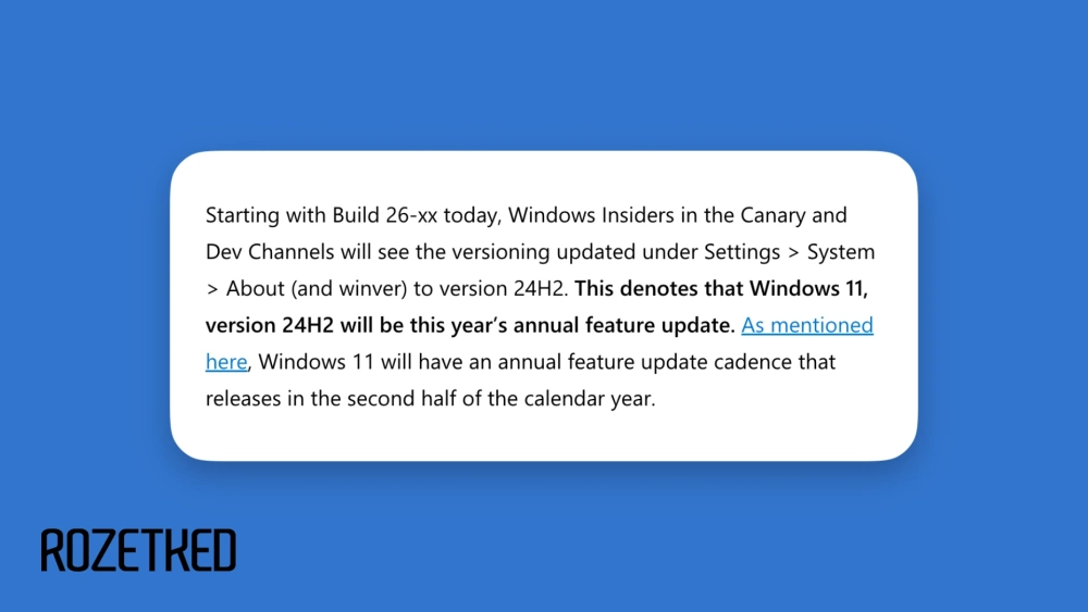 Ранее в справочных материалах уже находили упоминания Windows 11 24H2, но теперь Microsoft подтвердила в блоге, что версия ОС с таким индексом станет «ежегодным функциональным обновлением» в 2024 году. Компания напомнила, что Windows 11 теперь ежегодно получает не два, а одно большое обновление, которое выходит осенью-зимой.