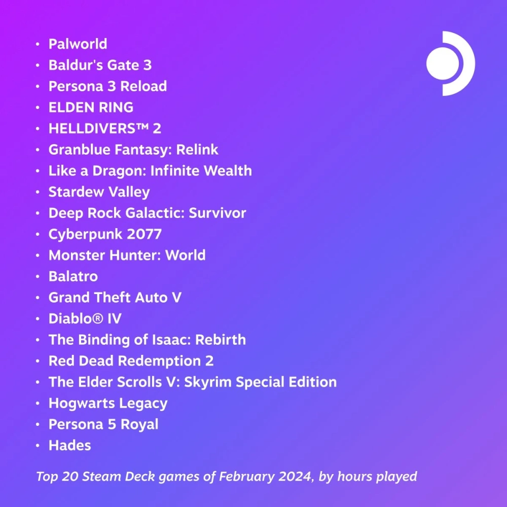 В январе самой популярной игрой на Steam Deck была Baldur's Gate 3, тогда как Palworld занимала вторую строчку, Elden Ring — третью.