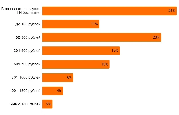Около 23% опрошенных пользовались платными функциями нейросетей, 34% платят или платили до 300 рублей в месяц.