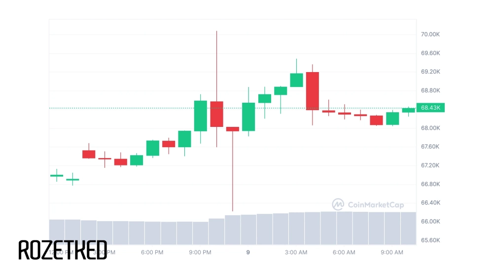 Сейчас стоимость главной криптовалюты скорректировалась к отметкам 68–69 тысяч долларов.