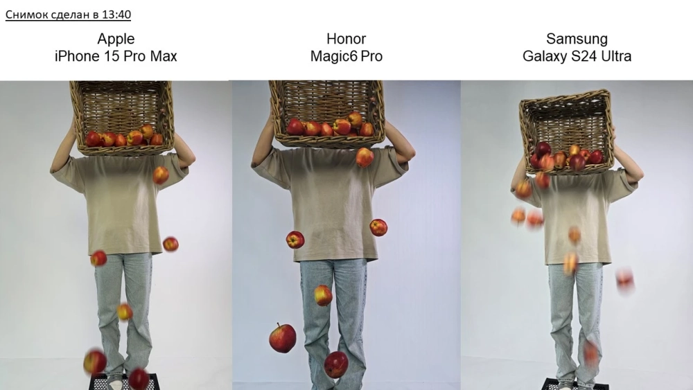 Условия у всех смартфонов были равноценные: студийный свет, штатив, выключенный ИИ, отключенный режим live-фото. Съёмка производилась с 10-секундным таймером. Как производился тест — смотрите в видео ниже.