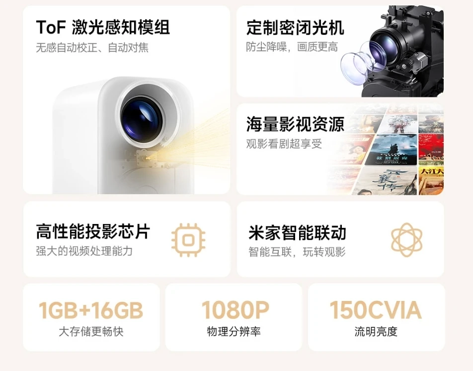 Проектор оснастили лазерным модулем ToF, который вкупе с алгоритмами искусственного интеллекта обеспечивает автоматическую коррекцию изображения и автофокусировку при запуске.