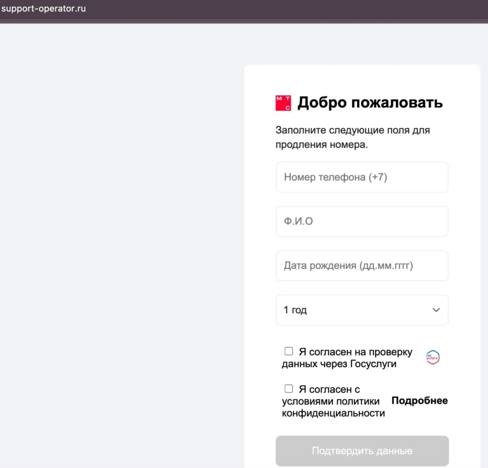 True OSINT рассказали, что в сети стали появляться фишинговые сайты, которые пытаются маскироваться под официальные порталы операторов связи. Один из таких ресурсов уже заблокировали, пишет «Ъ».