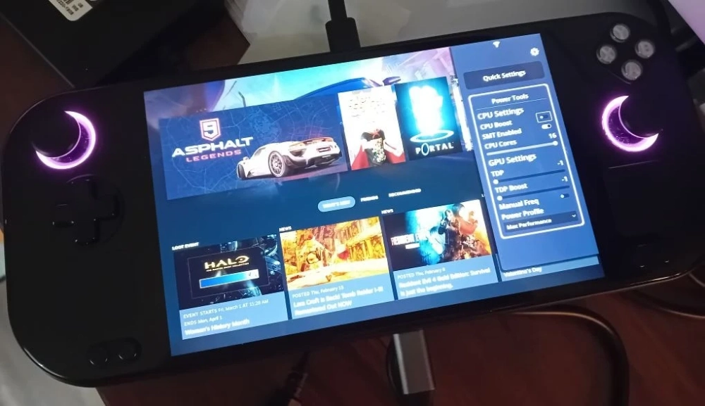 Консоль поставляется с 7-дюймовым IPS дисплеем FHD+, который обеспечивает частоту обновления 120 Гц. Аппаратная база — AMD Ryzen 7 7840U или Ryzen 7 8840U на выбор. Внутри также установлено 16 ГБ или 32 ГБ ОЗУ LPDDR5-6400, накопитель PCIe 4.0 ёмкостью до 2 ТБ и батарейка на 50 Втч. Wi-Fi 6E, Bluetooth 5.3, USB4 и порт 3,5 мм пригодится для связи и подключения. Работает всё это дело не на Windows, как многие привыкли, а на Manjaro Linux.