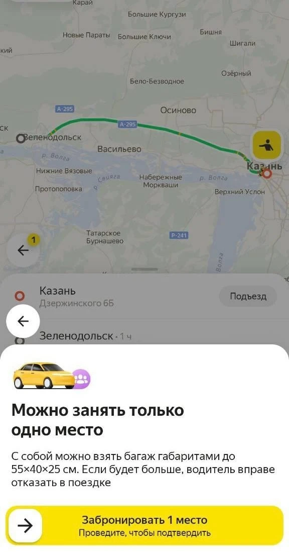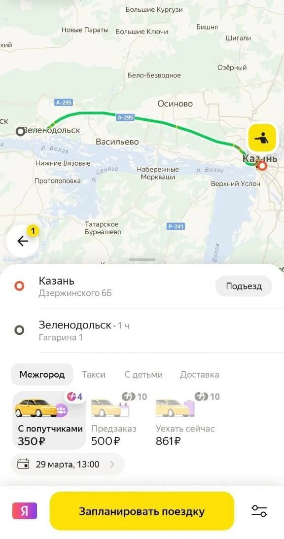Заказать междугородние поездки можно заранее. Пока новая услуга доступна только на направлении Казань — Зеленодольск и обратно.