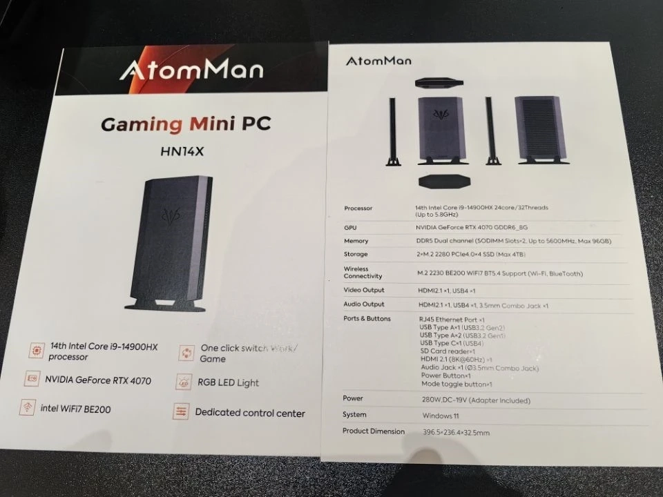 Представлен мини-ПК AtomMan HN149: Core i9-14900HX и RTX 4070 в странном корпусе
