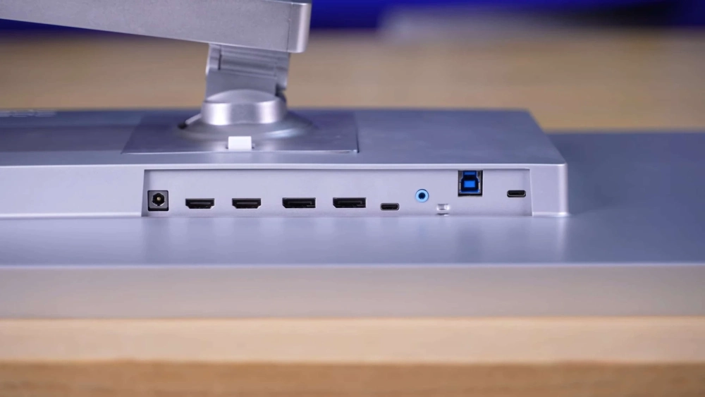 Помимо DisplayPort 2.0 у монитора есть порты HDMI 2.1 и USB Type-C мощностью до 96 Вт. Также производитель добавил KVM-переключатель. Все аксессуары, которые идут в коробке с монитором, выполнены в белом цвете.