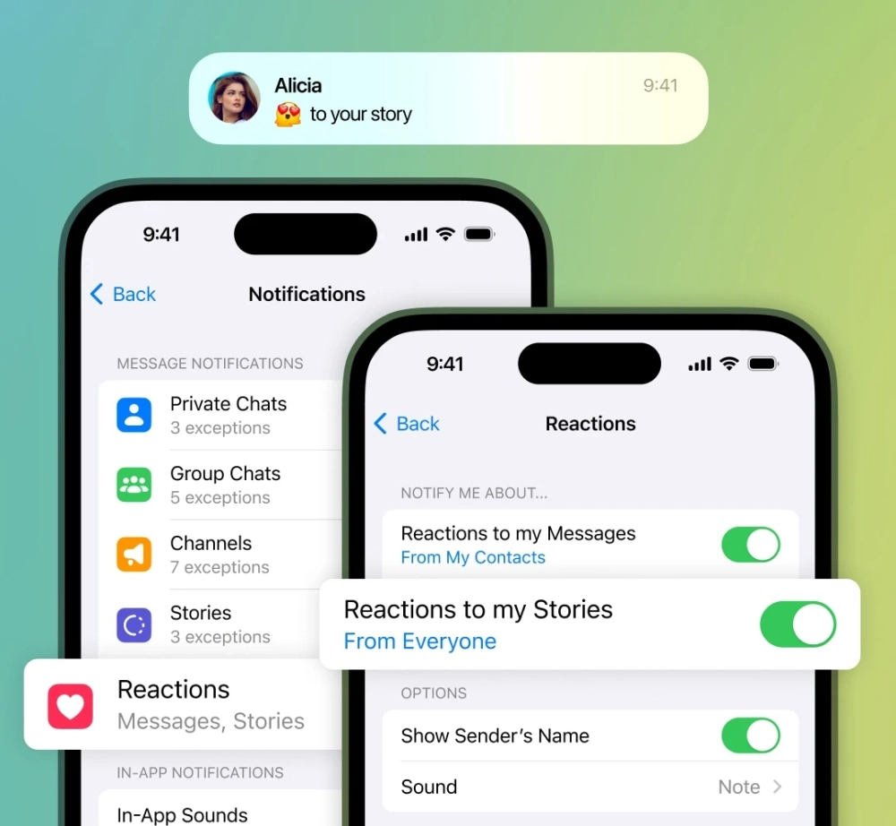 В «Настройках» можно настроить получение уведомлений о реакциях на сообщения или истории.