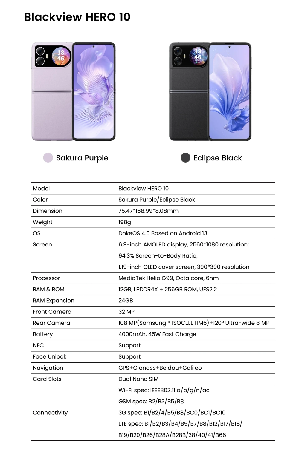 Стали известны все характеристики Blackview Hero 10 — самого доступного складного смартфона