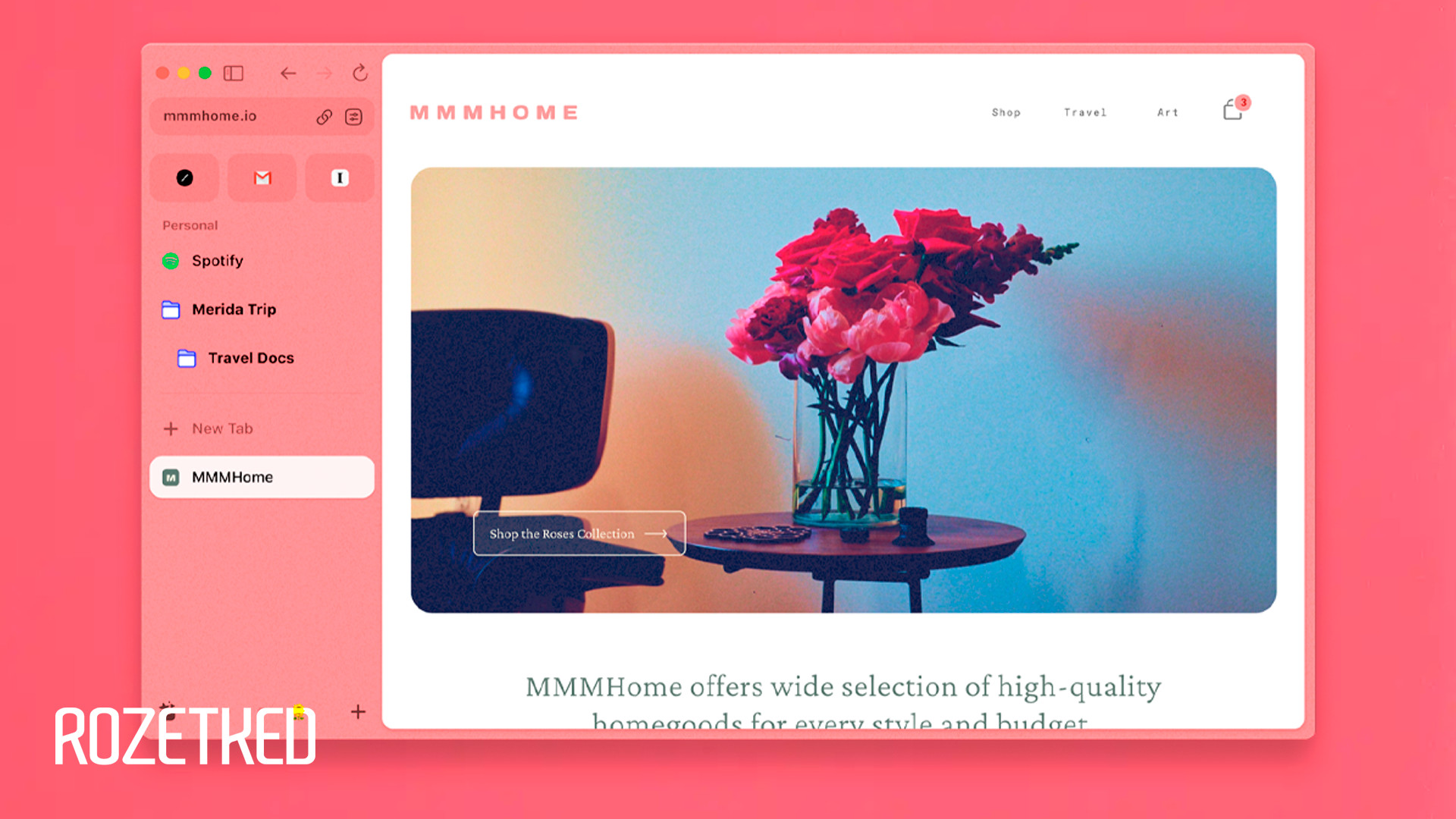 Arc использует движок Chromium, на котором также работают Edge и Google Chrome. Основная фишка в дизайне Arc заключается в том, что вкладки и прочие элементы интерфейса располагаются не в верхнем ряду, а в боковой вертикальной панели, которую можно скрыть.