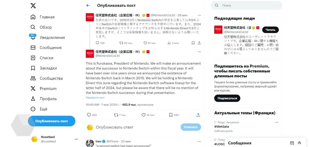 Президент компании Nintendo Сюнтаро Фурукава сообщил, что следующая консоль компании будет представлена до конца текущего финансового года. Он закончится в марте 2025-го. Видимо, информация от Nikkei оказалась достоверной.
