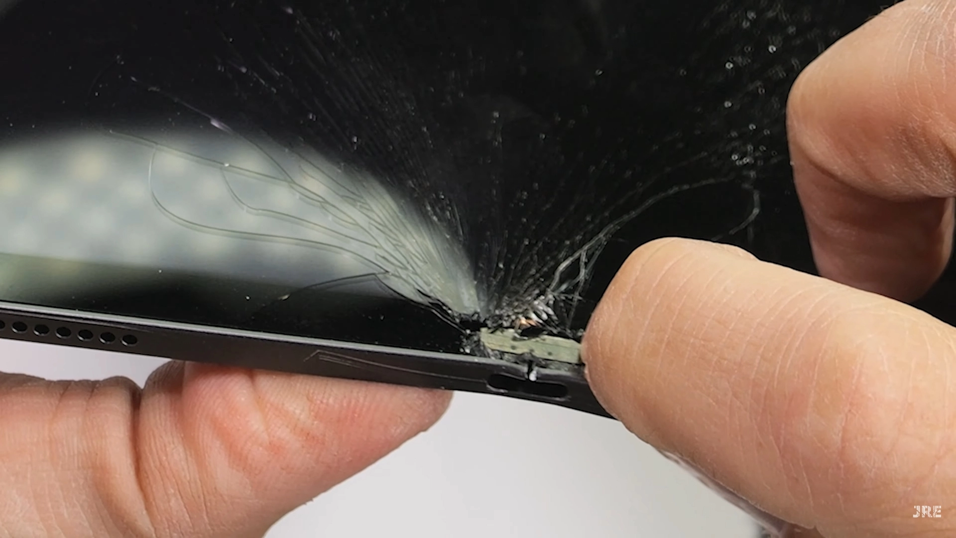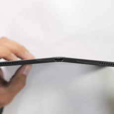 Когда автор видео перевернул iPad Pro (2024) в вертикальное положение и попробовал надавать, корпус почти сразу треснул в области порта зарядки. Во время сгибания внутренняя часть порта USB-C надавила на экран, из-за чего пошла трещина.