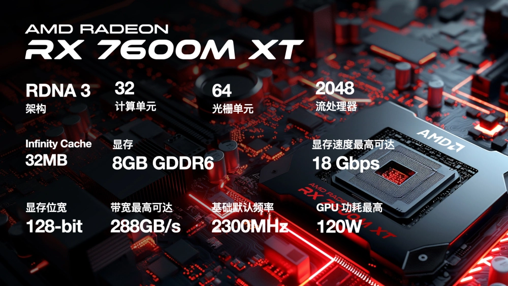На борту GPU AMD Radeon RX 7600M XT. Графический процессор с архитектурой RDNA 3 предлагает 32 вычислительных блока (2048 ядер) в сочетании с 8 ГБ памяти GDDR6. TGP — до 120 Вт.
