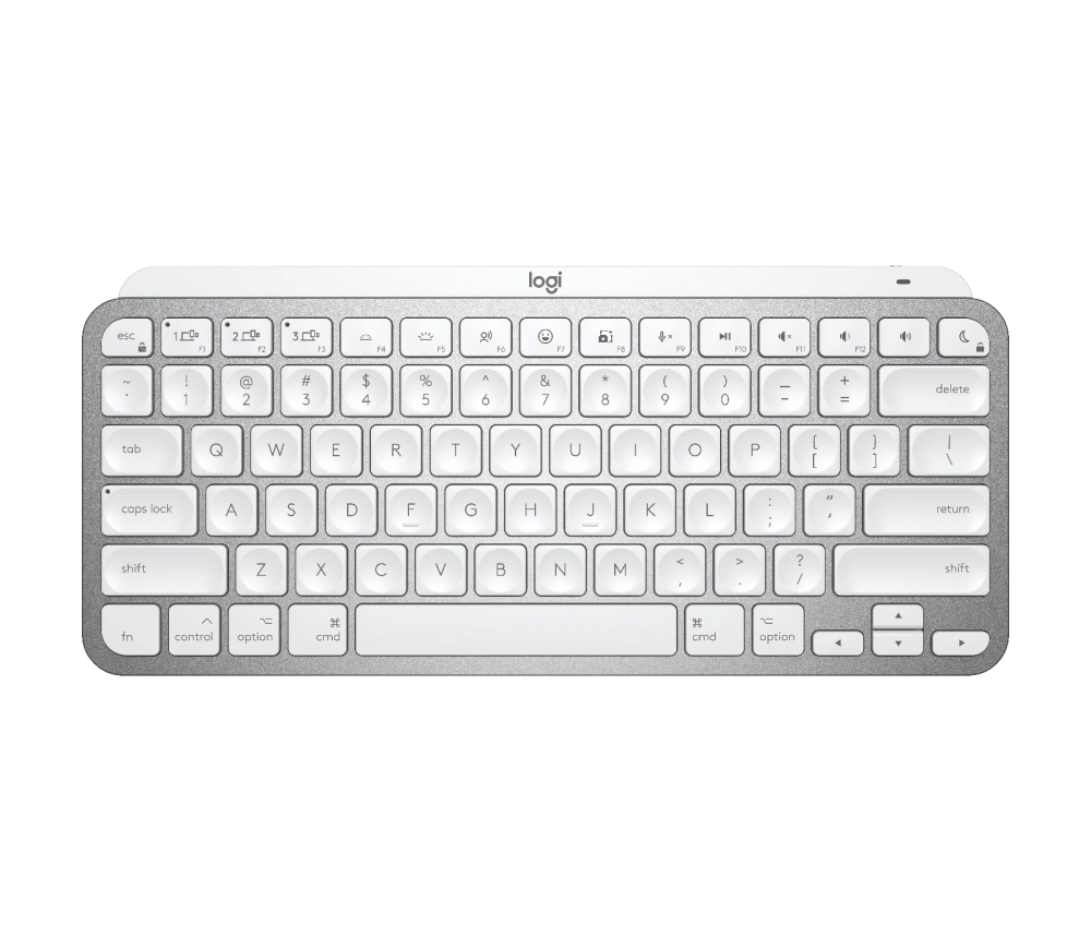 Logitech MX Keys Mini — более компактная клавиатура, чем MX Keys S. Доступна в чёрном и белом расцветках. Поддерживается умная подсветка.