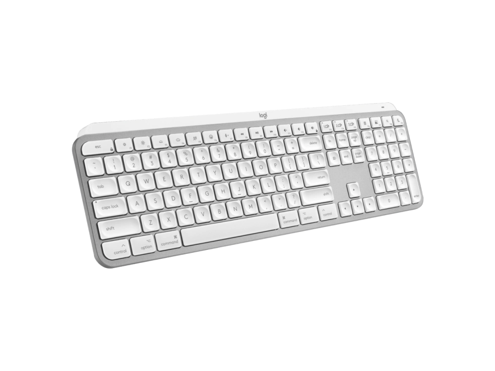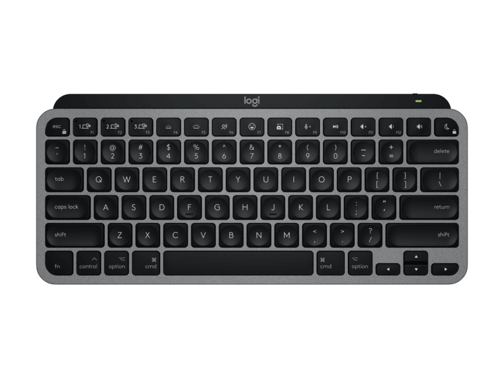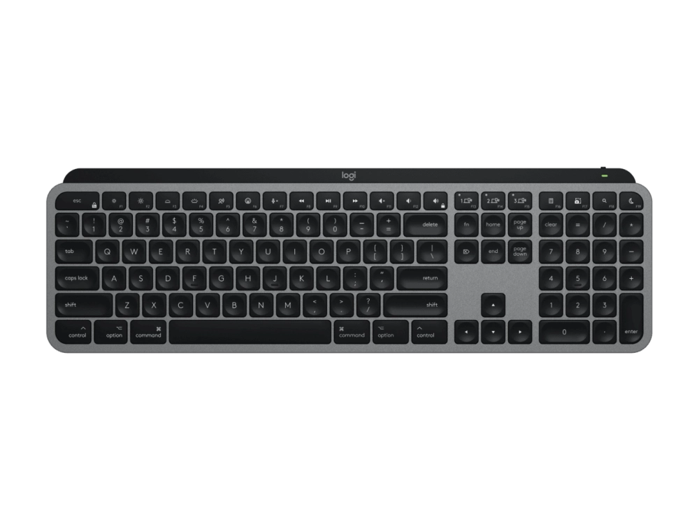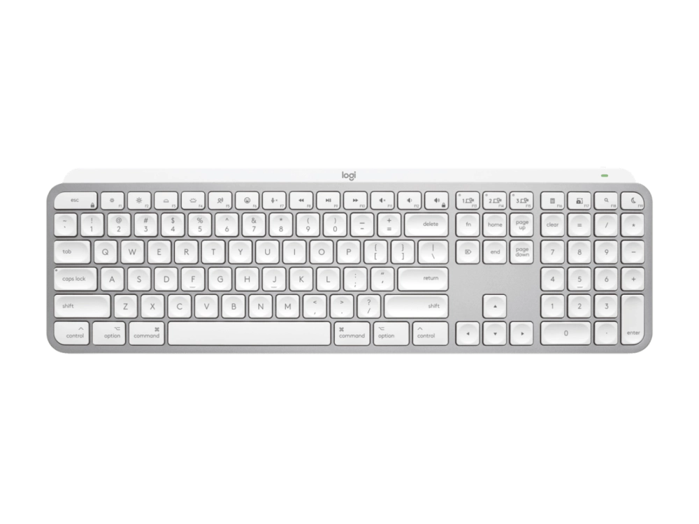 Logitech MX Keys S — клавиатура с низкопрофильными клавишами и интеллектуальной подсветкой, которая загорается, когда руки пользователя приближаются к клавиатуре. Для настройки есть приложение Logi Options+.