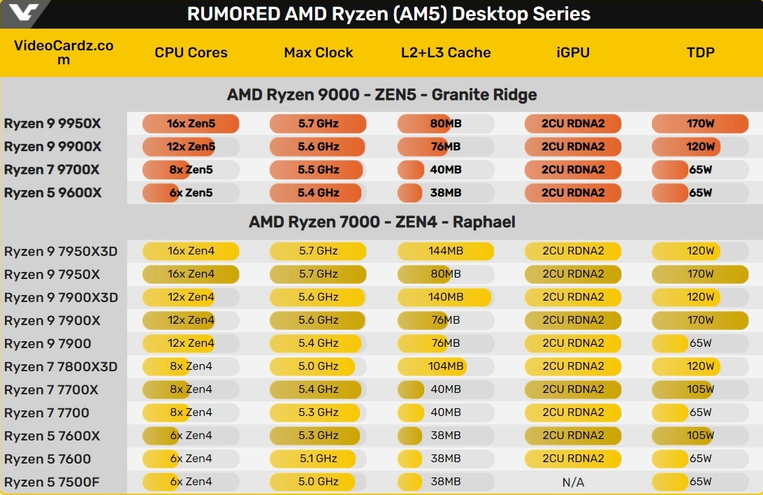 AMD представила десктопные процессоры серии Ryzen 9000 (Granite Ridge), созданные на базе архитектуры Zen 5. Все новинки будут работать на платах с сокетом AM5. Чипы поддерживают ОЗУ DDR5 и PCIe 5.0.